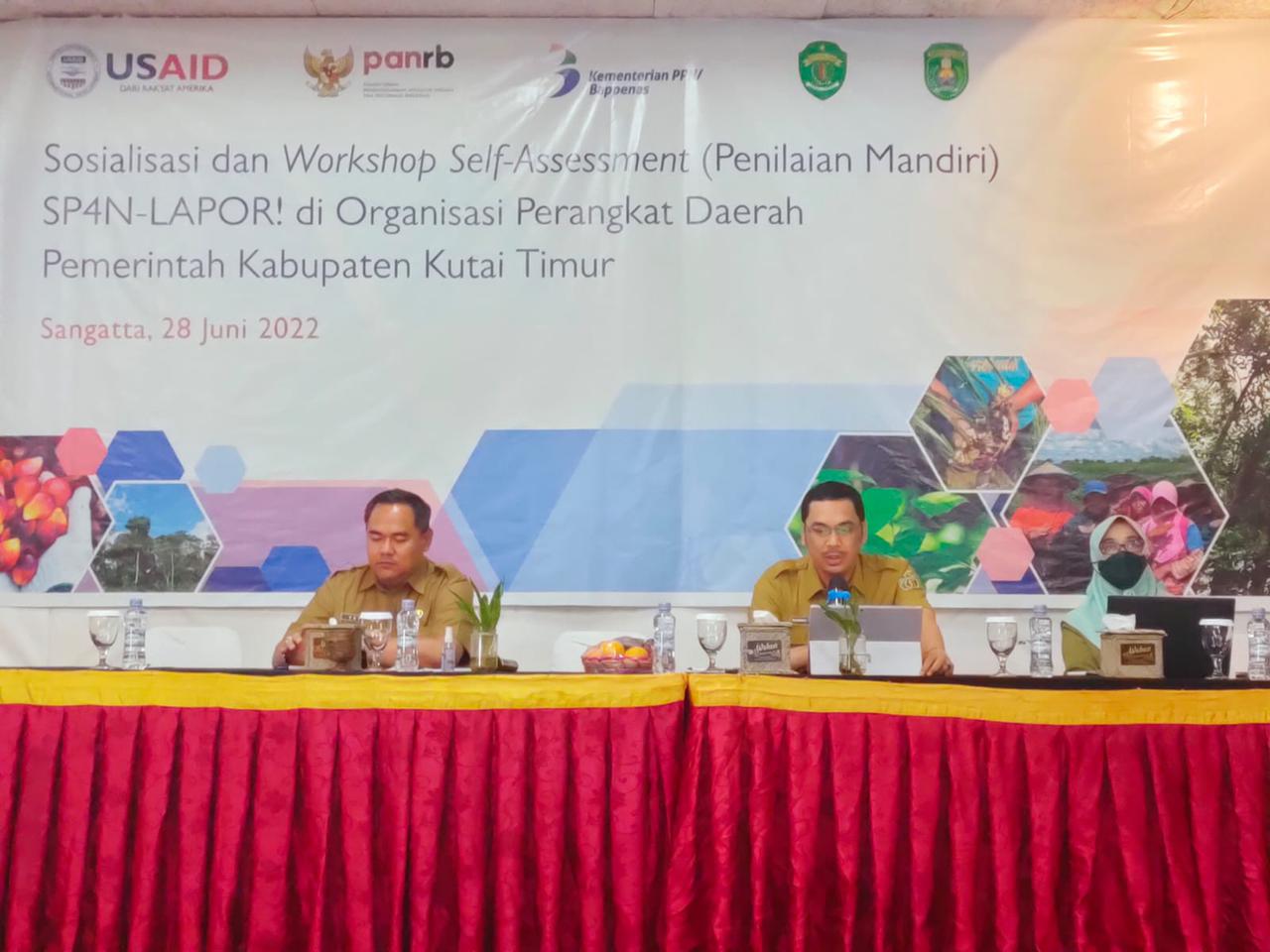Dalam sosialisasi ini turut hadir Wakil Bupati Kasmidi Bulang, perwakilan Ombudsman Tri Kumalasari, perwakilan USAID dan peserta workshop.