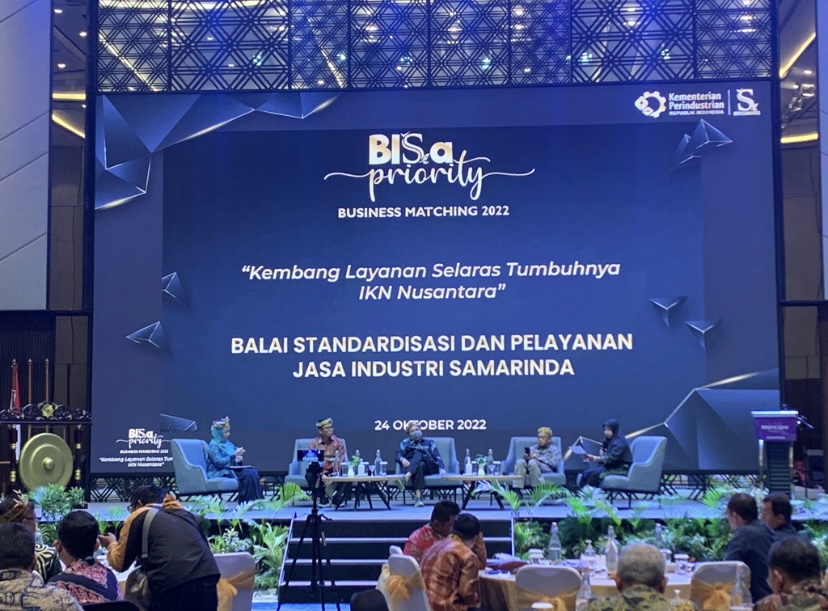 Kegiatan acara BISa Priority Business Matching 2022 yang dilaksanakan oleh Balai Standardisasi dan Pelayanan Jasa Industri (BSPJI) Samarinda yang bertema “Kembang Layanan Selaras Tumbuhnya IKN” berlangsung di Hotel Mercure Samarinda, Jalan Mulawarman, Kecamatan Samarinda Kota, Kota Samarinda, Kalimantan Timur.