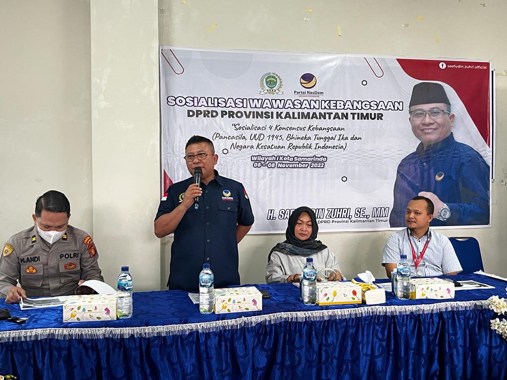 Saefuddin Zuhri Anggota Komisi III DPRD Samarinda Gelar Sosialisasi Wawasan Kebangsaan dengan tema “4 Konsensus Kebangsaan” bertepat di Universitas Mulia Kampus Samarinda Jl. Pahlawan No.2A, Dadi Mulya, Kec. Samarinda Ulu, Kota Samarinda, Kalimantan Timur. Senin, (7/11/22).