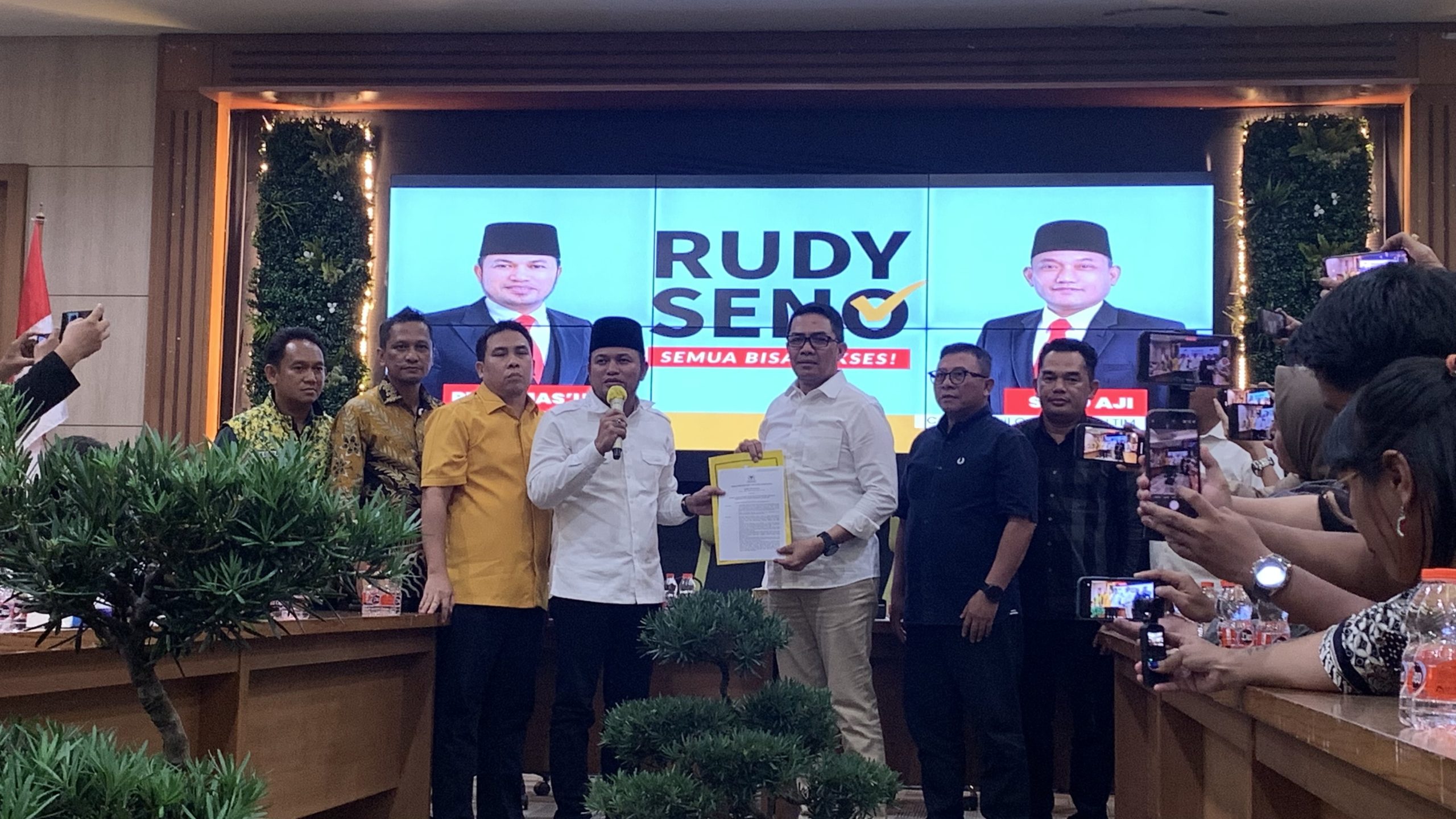 “Tentunya dengan didukung Partai Golkar pasangan Walikota dan Wakil Walikota ini akan menjadi pasangan yang bakal menjaga amanat dari Partai Golkar berserta dengan kader-kadernya yang ada di Kota Samarinda ini, serta membangun Kota Samarinda untuk bisa berakselerasi agar pemanfaatannya, kebermanfaatannya dari seluruh partai pengusung terkhusus Partai Golkar bisa dirasakan oleh seluruh masyarakat Kota Samarinda.” Ungkap Rudy Mas’ud.