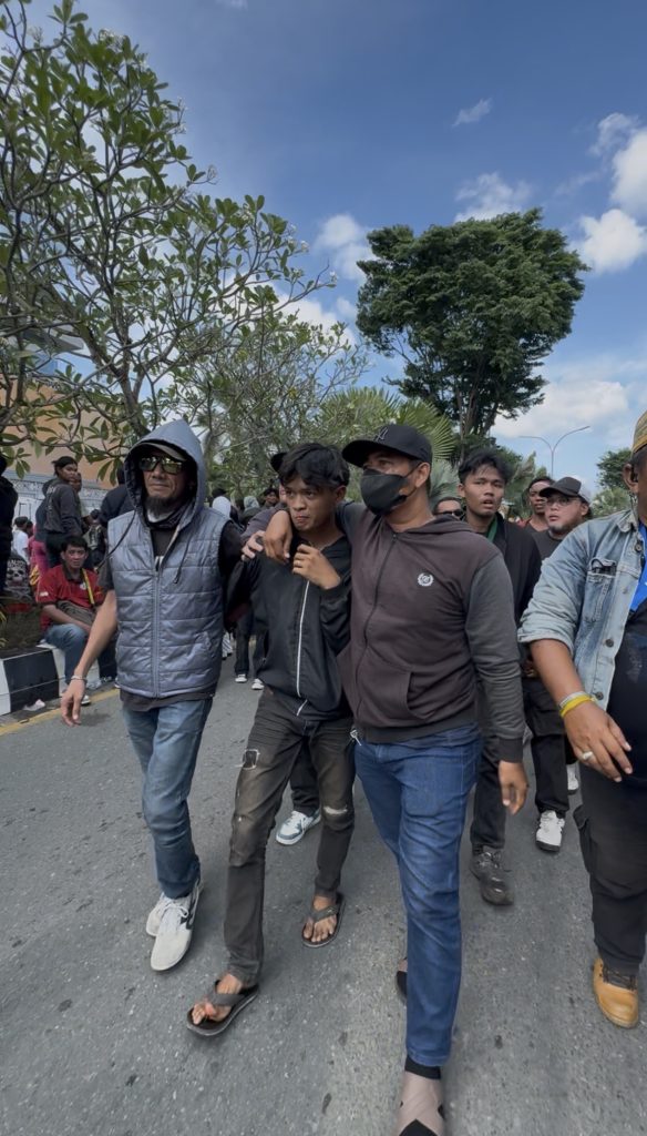 Dalam pantauan di lokasi, massa aksi yang sebelumnya menyampaikan aspirasi secara terbuka mulai memanas setelah munculnya kepulan asap berwarna oranye dari sebuah benda yang diduga bom asap rakitan. Kepulan asap tersebut sempat menarik perhatian aparat keamanan dan peserta aksi lainnya.